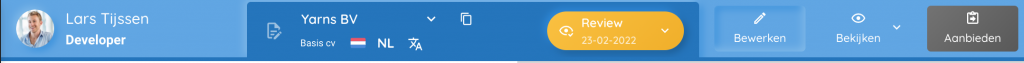 De Architect-toolbar bevat de belangrijkste informatie m.b.t. het cv.