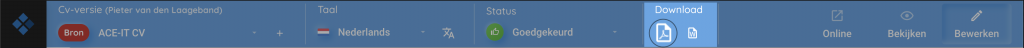 Op elk gewenst moment kan een CV worden bekeken in de preview modus. Maar het is ook mogelijk om het CV op elk moment te downloaden als PDF.