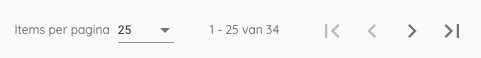 Daarnaast ziet u welk deel van de resultaten u op dit moment bekijkt. In het bovenstaande voorbeeld is dat 1 – 25 van 34. Wat inhoud dat u resultaten 1 tot en met 25 bekijkt en dat er nog 9 resultaten op de volgende pagina te vinden zijn. U kunt ook kiezen om het aantal resultaten per pagina te vergroten.