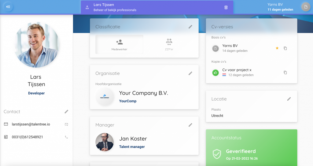 In het midden vindt u wie uw manager is en daaronder kunt u de locatie of regio waar u beschikbaar bent noteren.