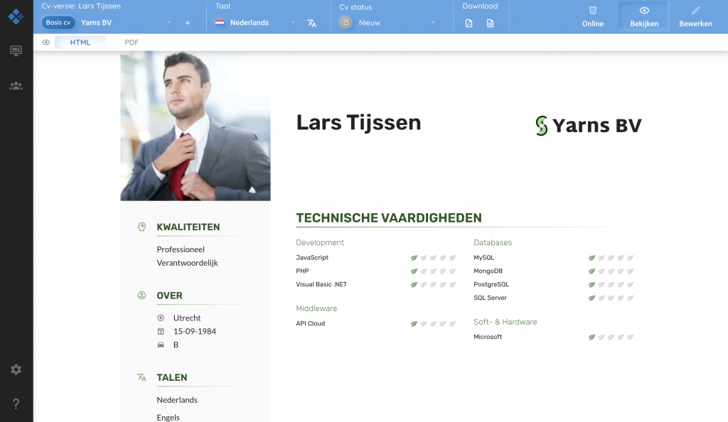 U kunt elk cv van elke professional die gekoppeld is aan deze cv-layout bekijken met de verzochte wijzigingen.
